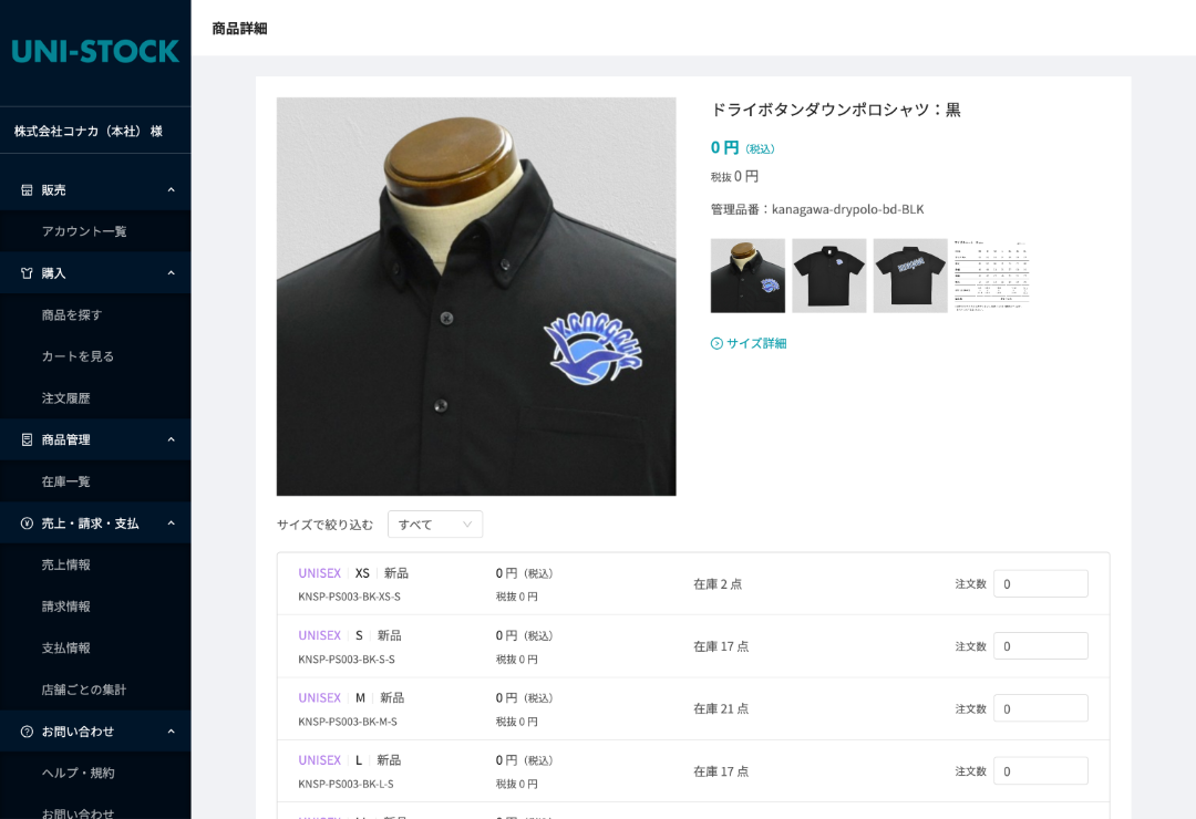 ユニフォーム管理システム「UNI-STOCK」